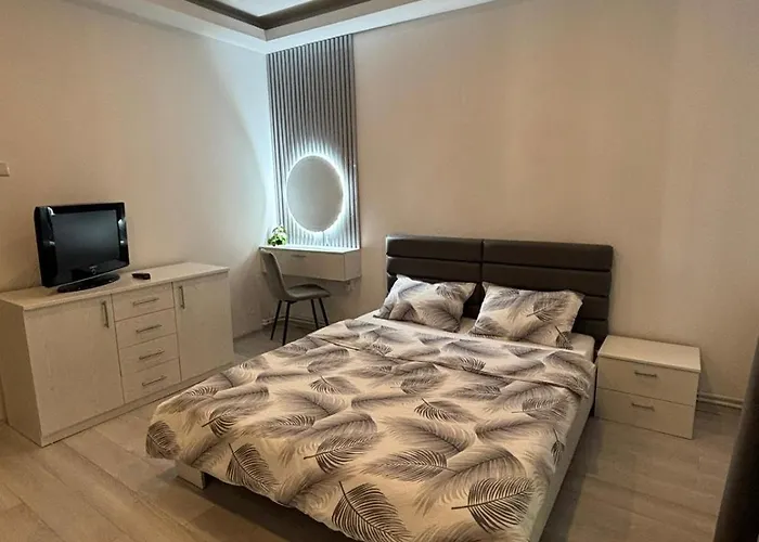 Apartament Central dairesi, Büyük Mahmudiye Camisi'a yaklaşık 2 km uzaklıktadır. Bu 1 yatak odalı dairede donanımlı bir mutfak ve 1 banyo odası vardır.